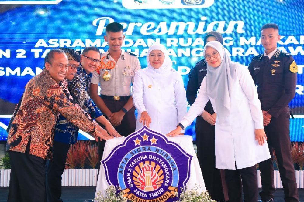 BANYUWANGI | B-news.id - Gubernur Jawa Timur Khofifah Indar Parawansa meresmikan Wisma Aryasatya SMAN 2 Taruna Bhayangkara Banyuwangi serta tiga asrama dan ruang makan SMAN 1 Taruna Madani Pasuruan Minggu (11/2).