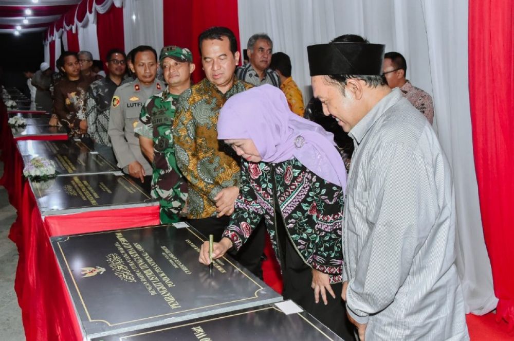 PROBOLINGGO | B-news.id - Gubernur Jawa Timur Khofifah Indar Parawansa sehari sebelum akhir masa jabatan berakhir tampak meresmikan bantuan Pembangkit Listrik Tenaga Surya Atap untuk Kantor Pemerintah, Pondok Pesantren, dan UMKM di UPT Pelabuhan dan Pengelolaan Sumber Daya Kelautan dan Perikanan Mayangan, Pelabuhan Perikanan Pantai Mayangan Probolinggo pada Minggu (11/2) malam.