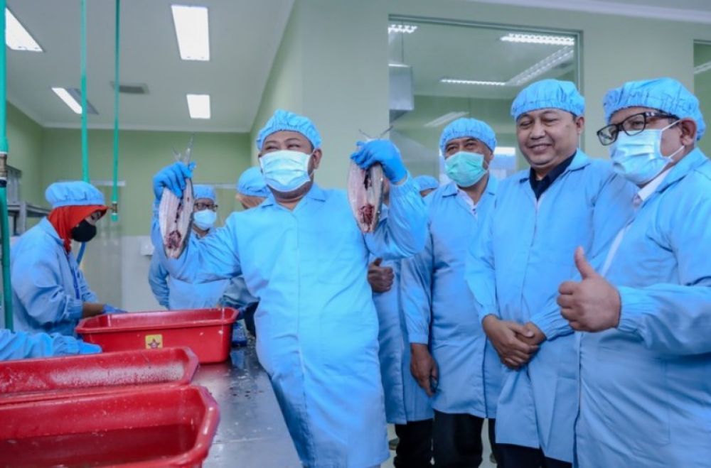 Bupati Gus Muhdlor saat meninjau unit pengolahannikan. (Ist)