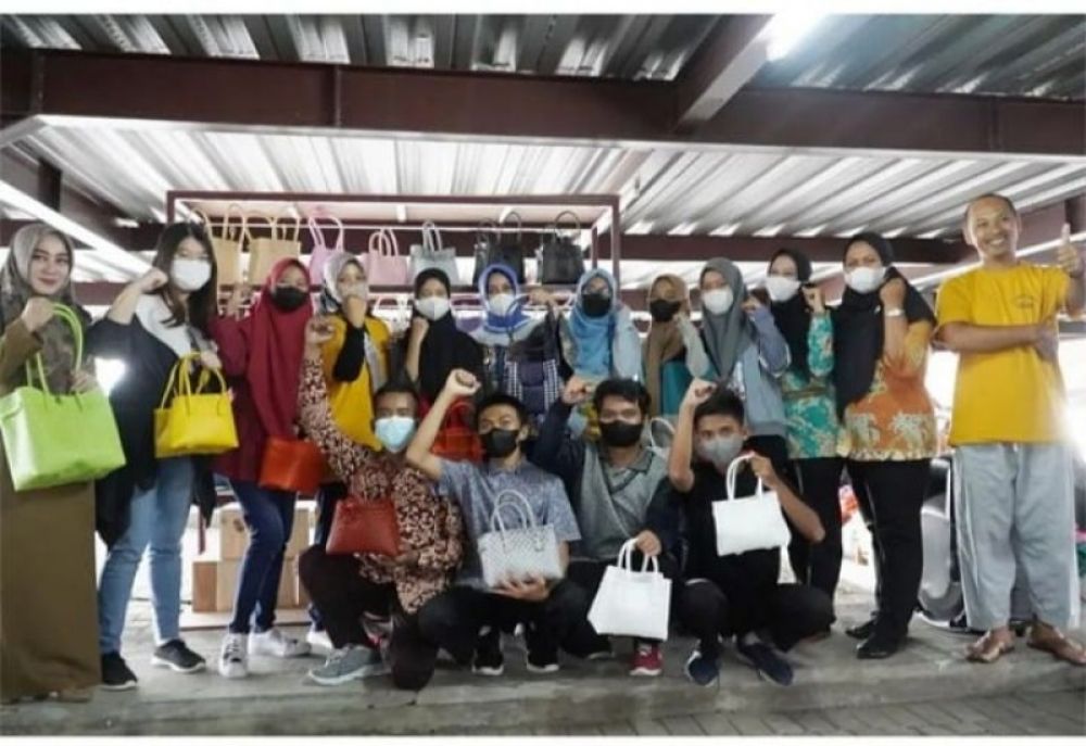 "Pelatihan Tas Jali iku bukan Bang Jali lho Rek, tapi tas anyaman dari bambu sintetis, " ungkapnya.