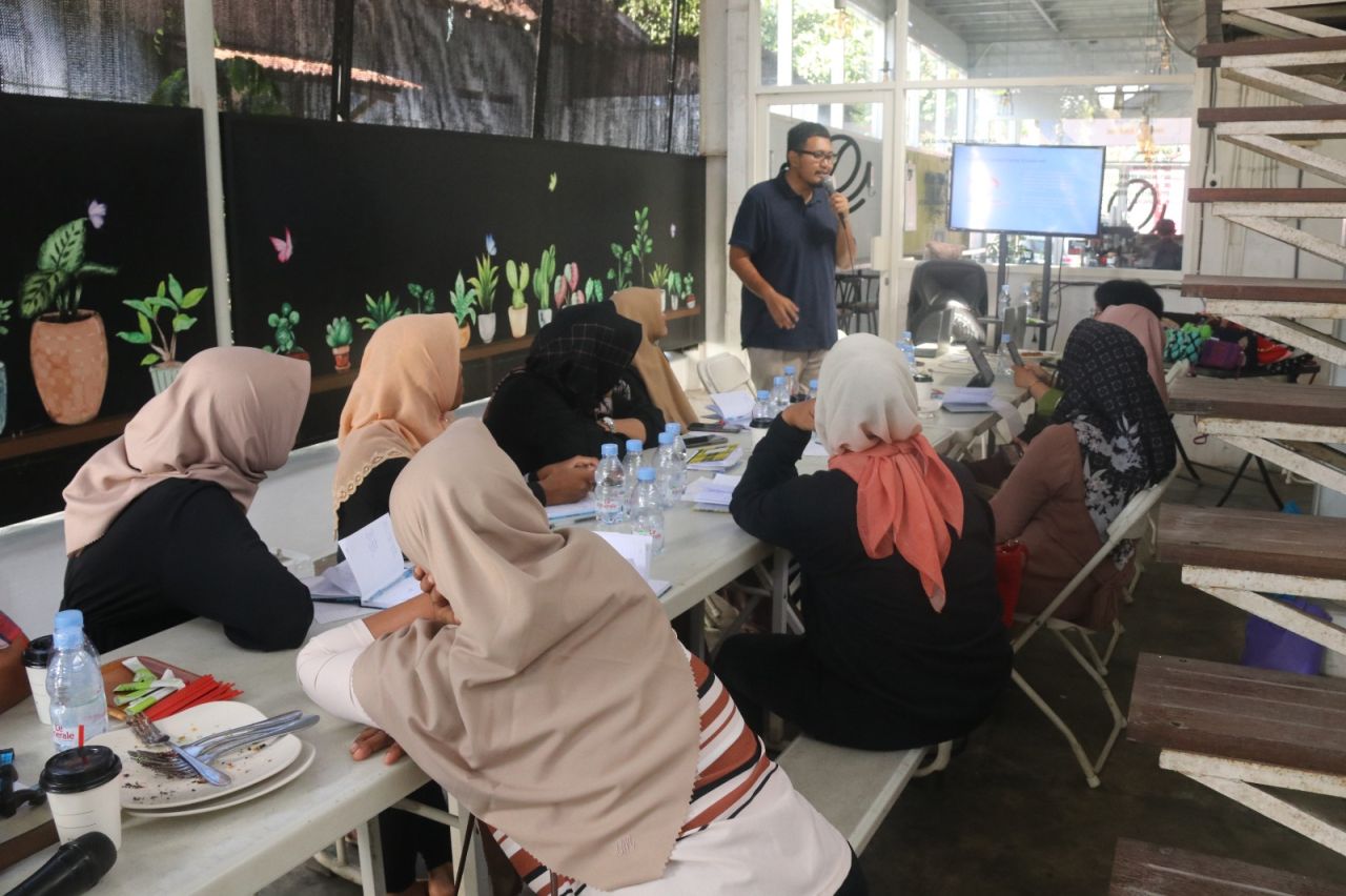 Narasumber dari Tim FEB Unesa saat menyampaikan materi pelatihan kepada puluhan pelaku UKM Talikur Kandangan. (Ist)