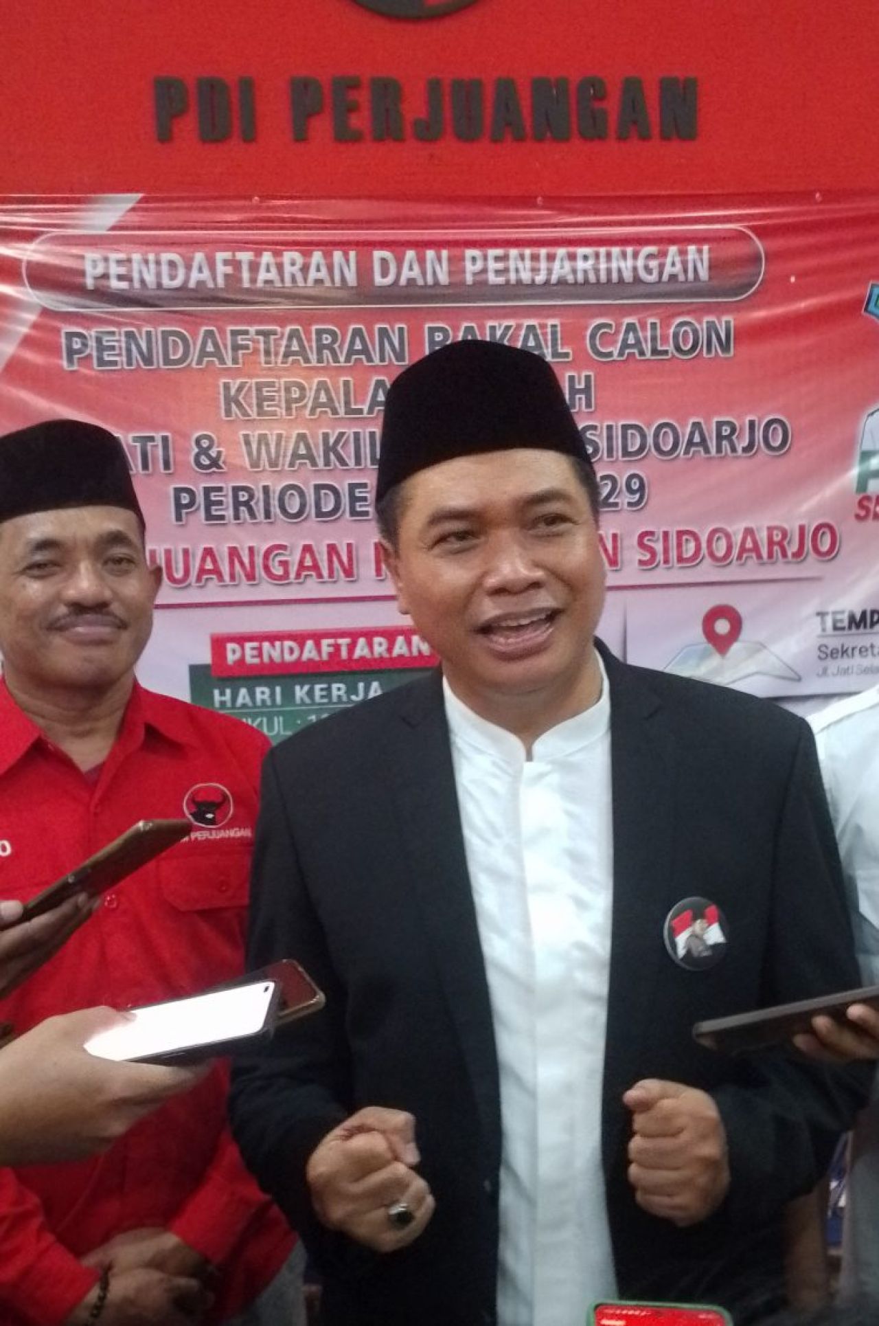 Pada kesempatan ini, Abah Sugiono juga menyatakan 100 persen tidak ada keraguan pada dirinya untuk maju sebagai Cabup dari PDIP. Dengan berpedoman bahwa sesuatu yang baik harus diperjuangkan, Abah Sugiono mengikrarkan visi misi “Menyongsong Sidoarjo menuju lebih baik dan bermartabat, dengan mewujudkan kesejahteraan masyarakat yang berkeadilan dan pembangunan berkelanjutan”