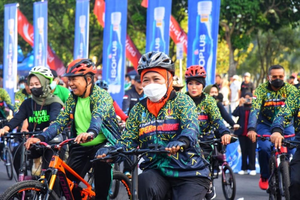 Tak hanya memberangkatkan peserta Super Road Bike 2022, di kesempatan kali ini Gubernur Khofifah bersama jajaran forkopimda Jember juga turut gowes bersama mengelilingi Kabupaten Jember.