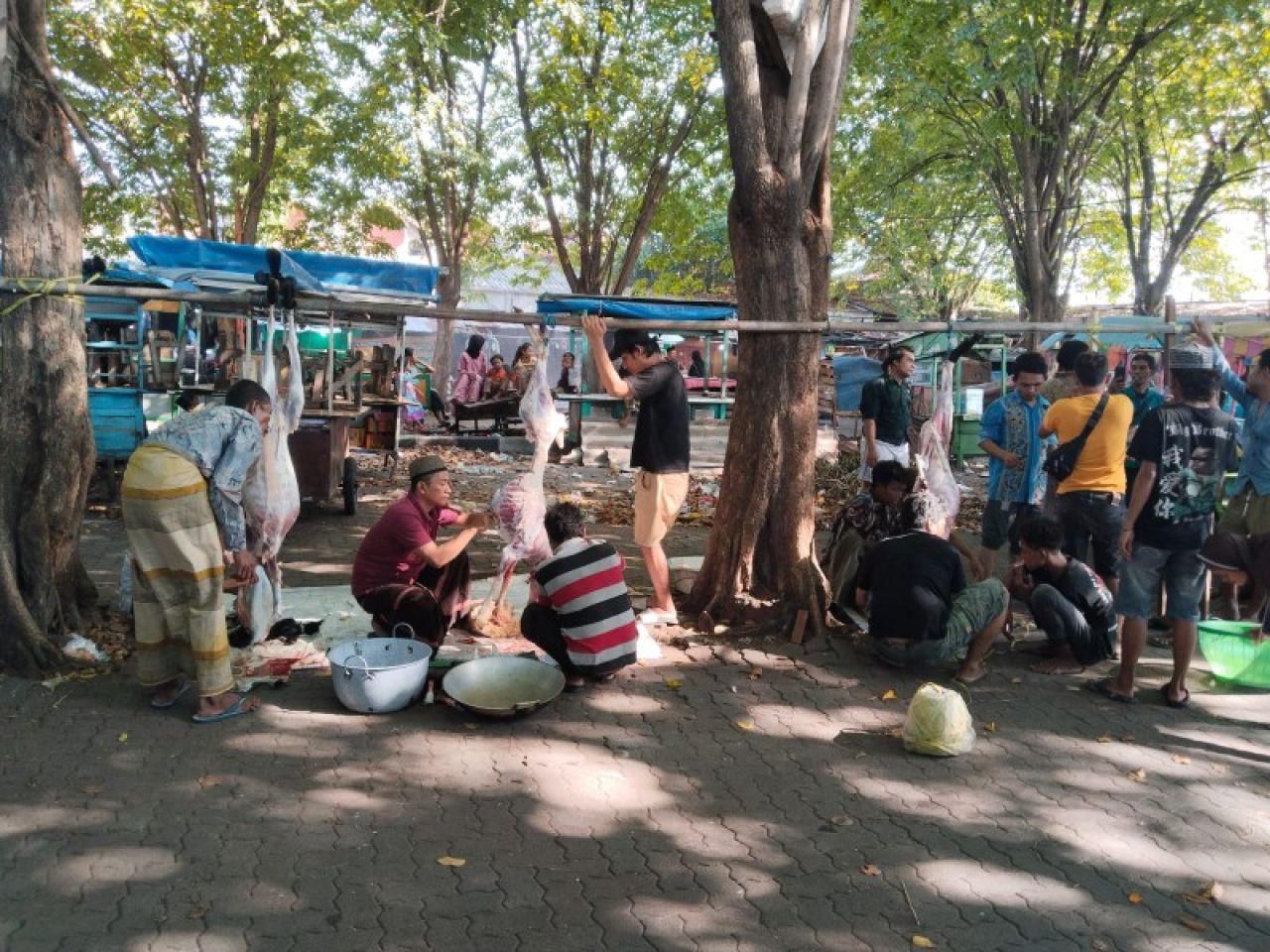 Sejumlah warga yang tinggal di dalam bekas toko di dalam terminal, setidaknya 20 tahun bahkan lebih, baru kali ini ada pelaksanaan solat Idul Adha dan pemotongan hewan kurban.
