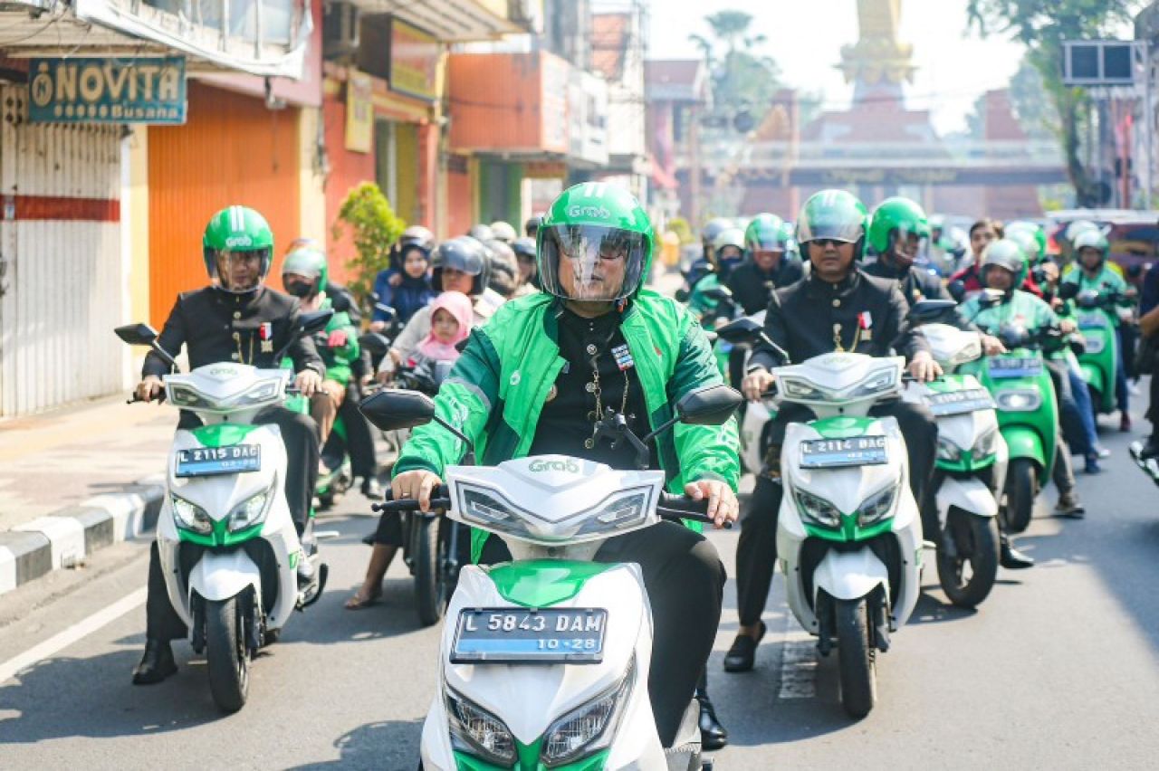 Rangakaian kegiatan berlanjut dengan konvoi motor listrik bersama 30 driver ojek online (ojol) Grab dari Alun-alun Wiraraja menuju lokasi peresmian Jl. Ir. Soekarno (Balong Cangkring - Rejoto) di Kecamatan Prajuritkulon.
