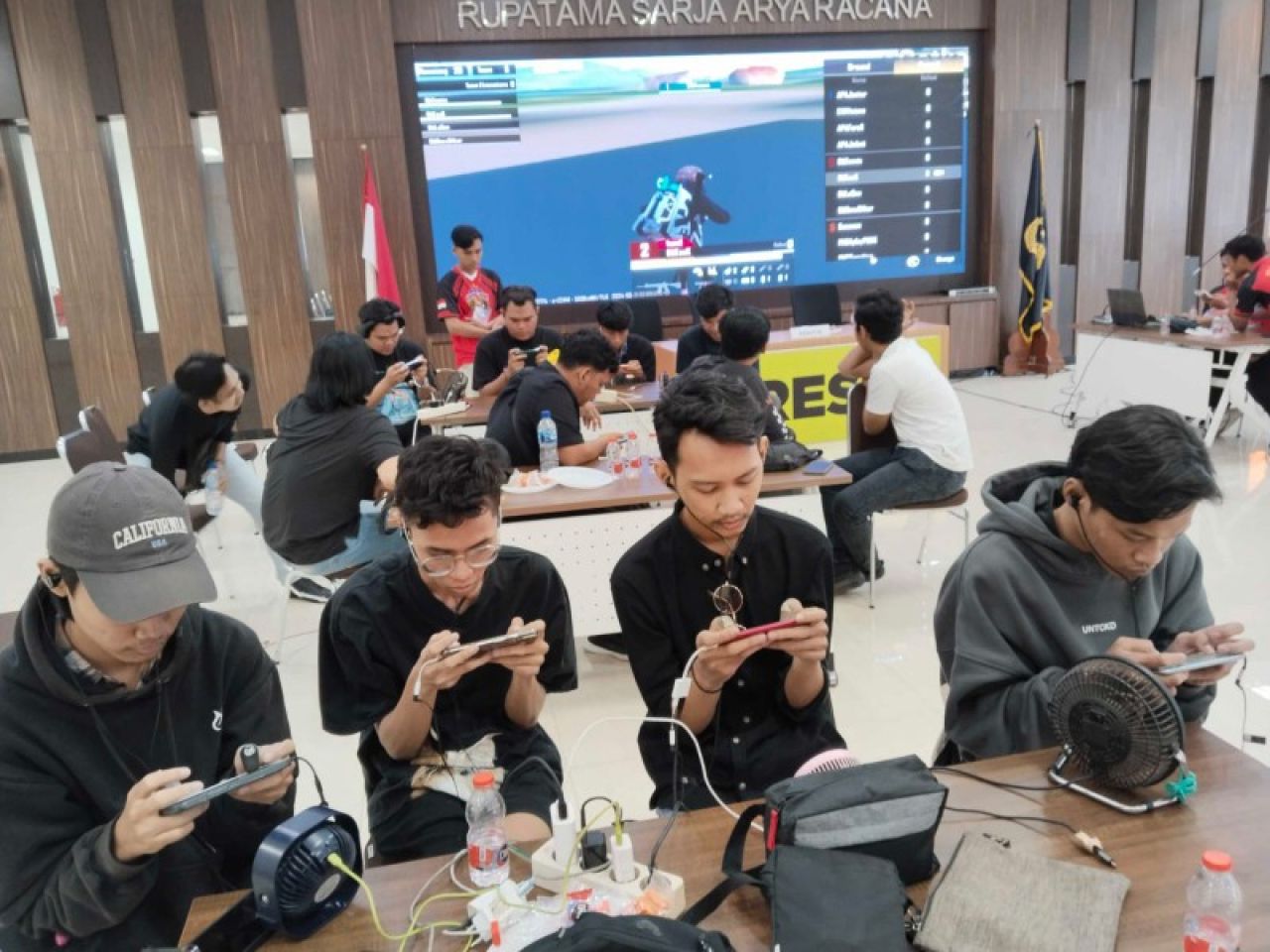 Player PUBG saat bertanding di Mapolres Gresik. (Ist)
