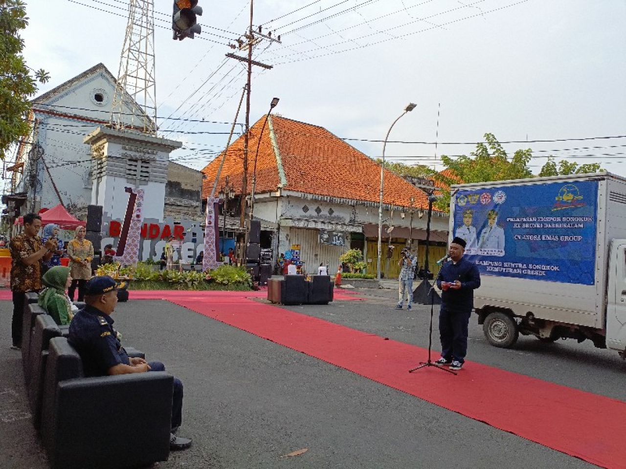 Pelepasan ekspor perdana songkok ini dihadiri oleh Kepala Diskoperindag dan UMKM Darmawan, Ketua Dekranasda Gresik Nurul. “Hari ini kita ekspor songkok atau peci ke Brunei Darusaalam, produksi usaha mikro kecil dan menengah (UMKM) milik Ibu Sakinah Maulidiyah dari Kelurahan Kemuteran, Gresik," ucap Bupati Yani.