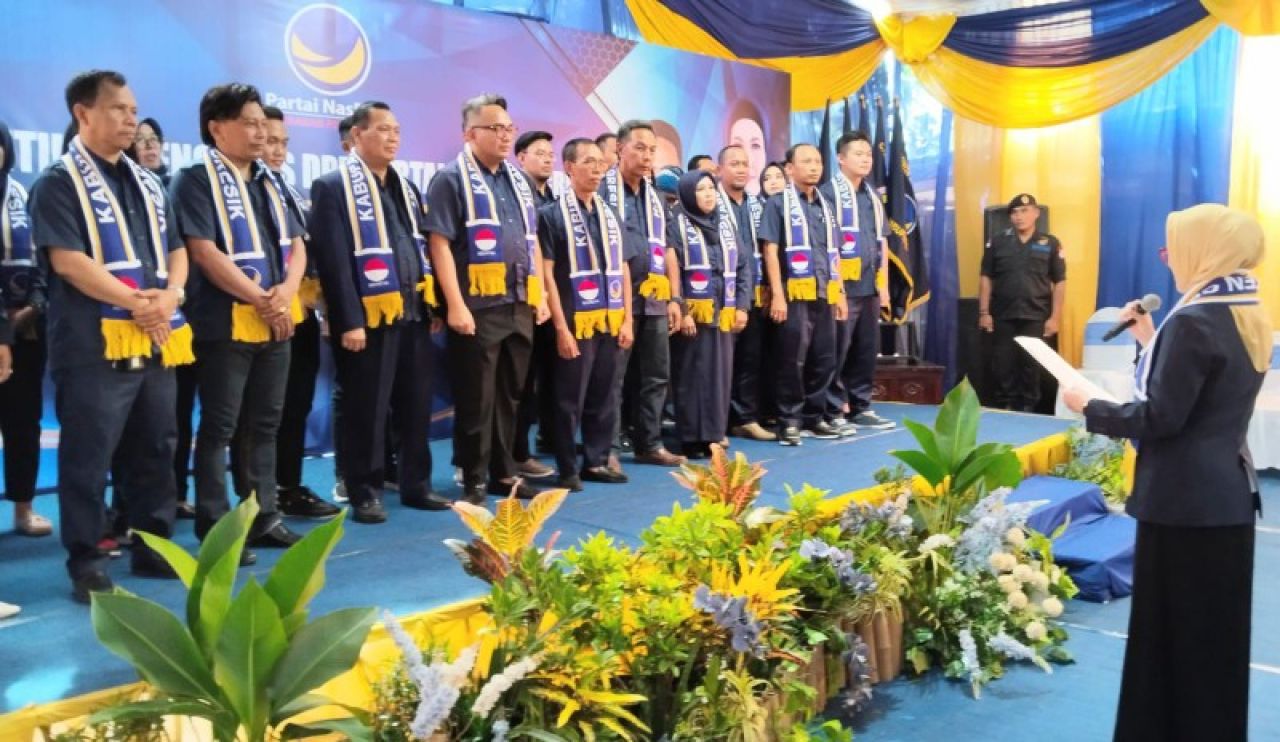 GRESIK | B-news.id - Dewan Pengurus Wilayah (DPW) Partai Nasional Demokrat (NasDem) Jawa Timur melantik pengurus DPD NasDem Kabupaten Gresik. Pelantikan yang dihadiri langsung oleh Ketua DPW NasDem Jatim, Lita Mahfud Arifin juga sekaligus menjadi momen peresmian secara resmi kantor baru DPD NasDem Gresik.
