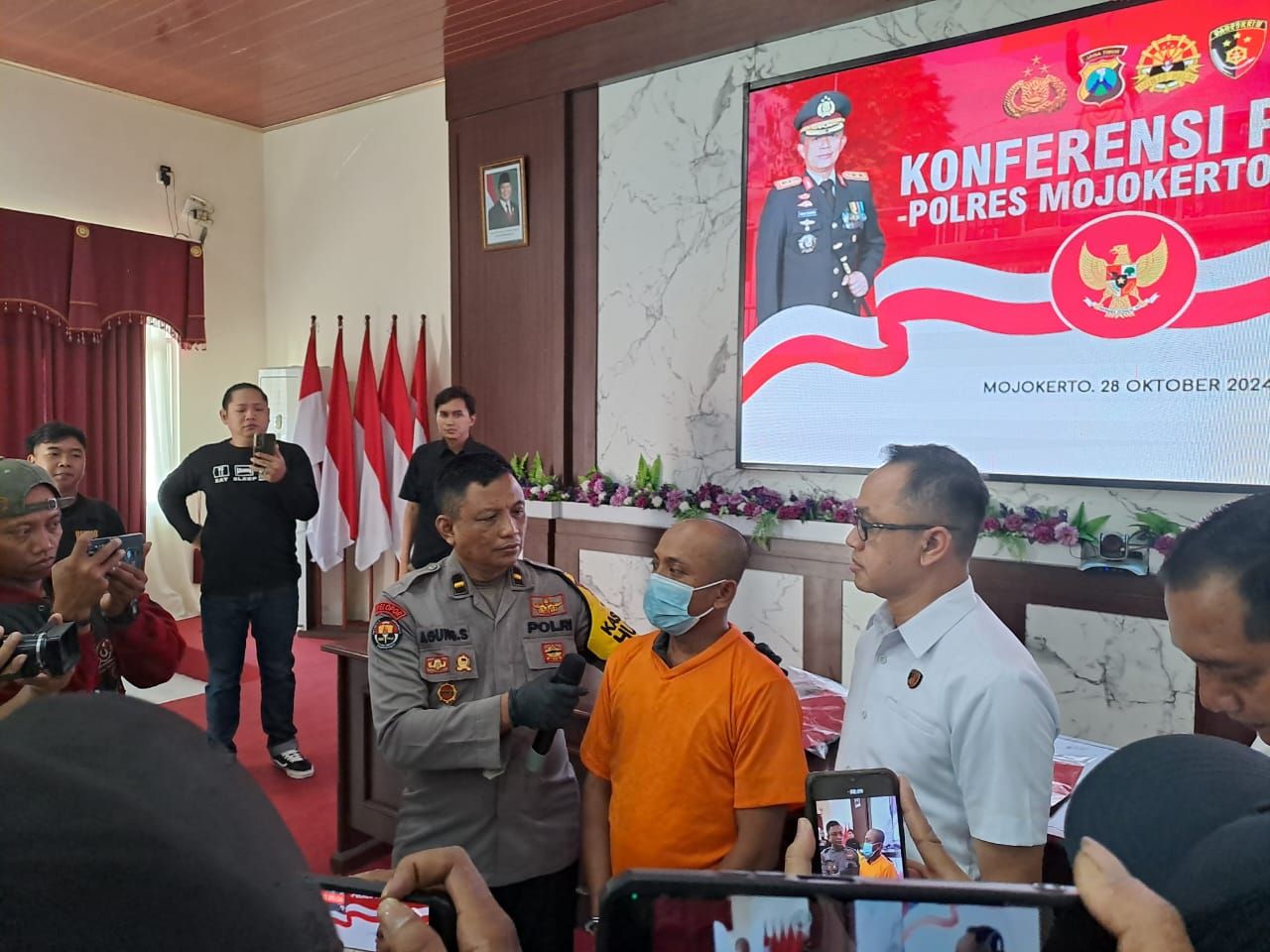 'Di Jalan Raya Labuan Poto Kecamatan Poto Tano Kabupaten Sumbawa Barat pelaku DH berhasil ditangkap pada pukul 01.00 dinihari tanggal 25 Oktober 2024. Selanjutnya yang bersangkutan digelandang Mapolres Mojokerto Kota," terang AKP Rudi Zaeny pada saat konferensi pers.