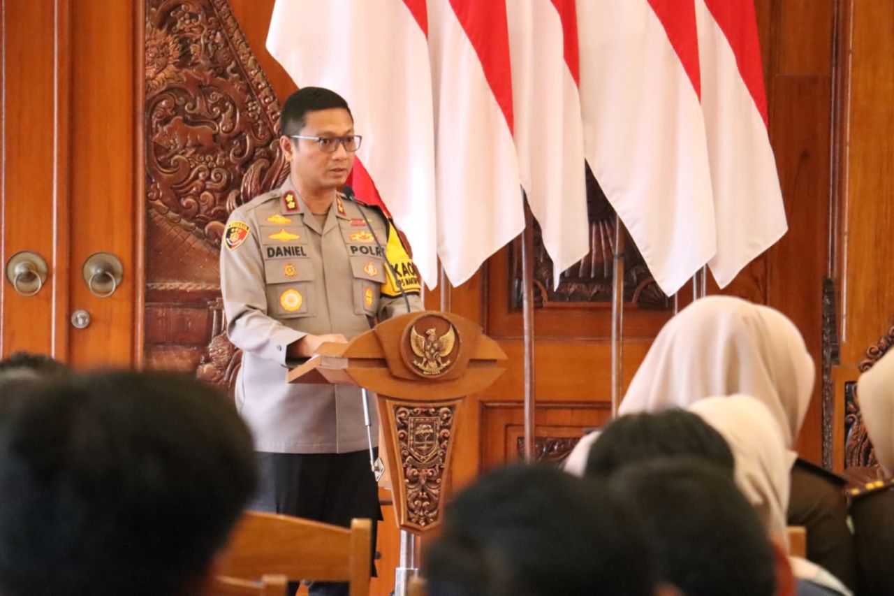 Kapolres Mojokerto Kota AKBP Daniel Somanonasa saat memberikan sambutan pada FGD Netralitas TNI-Polri dan ASN. (ist)