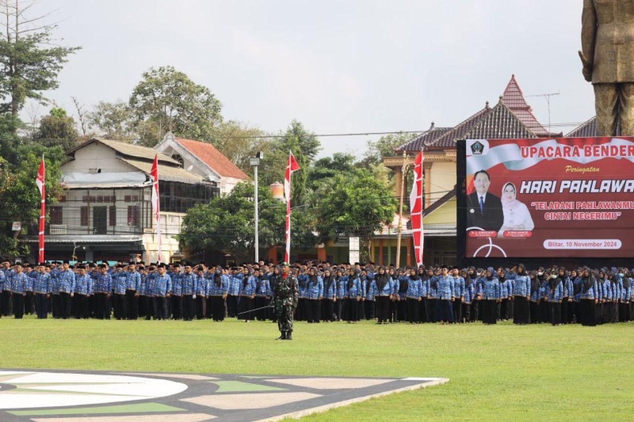 Pemkab Blitar saat menggelar upacara Hari Pahlawan di Alun- alun Kanigoro kab Blitar. (ist)