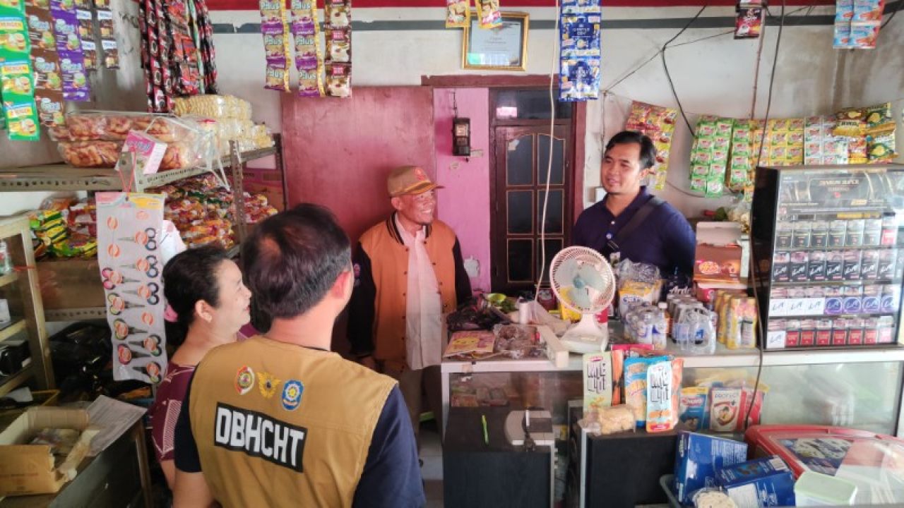 Tio petugas dari KPPBC juga mengedukasi pemilik toko tentang bahaya rokok ilegal. (foto: eko/B-news.id)