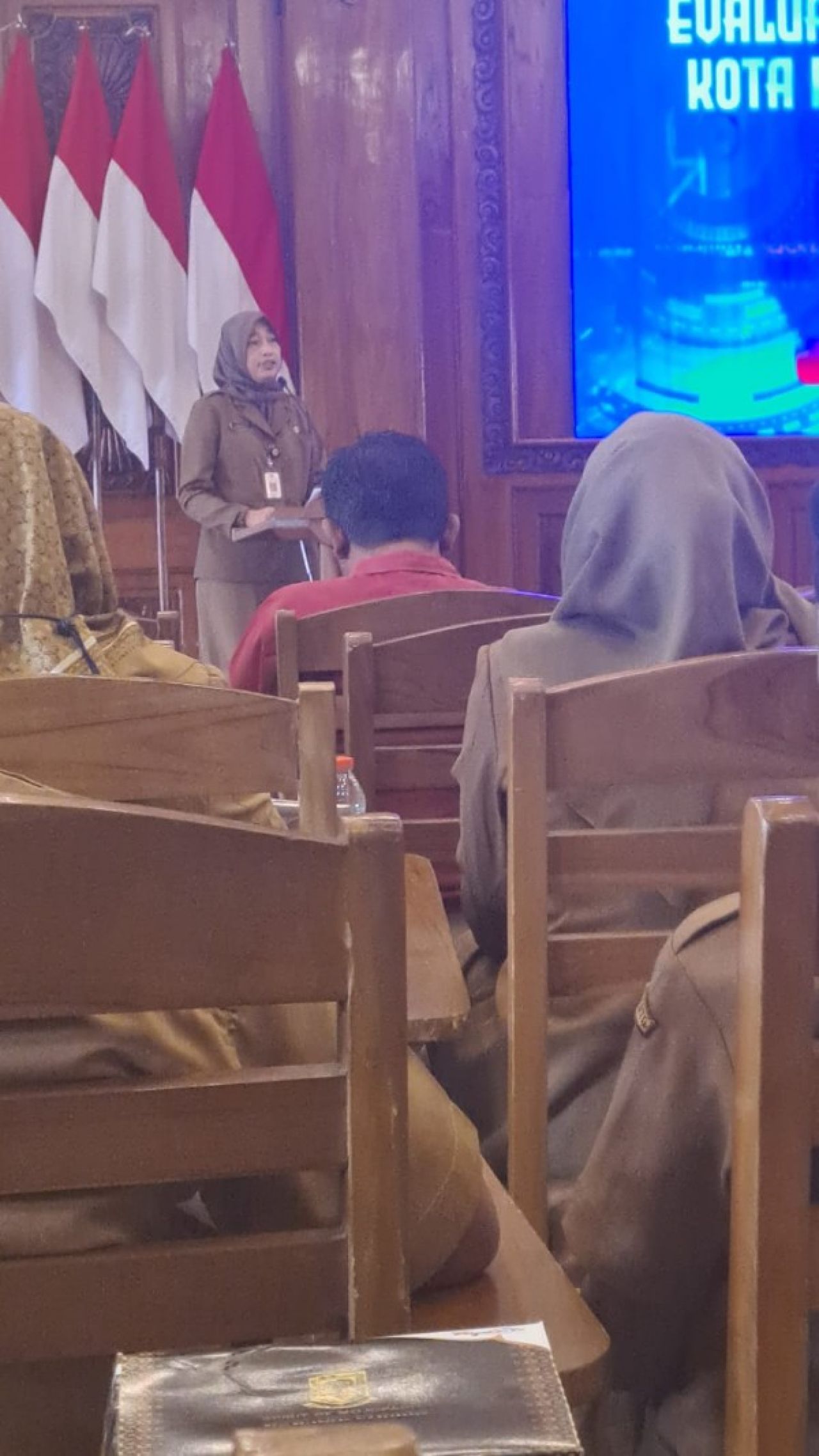 Santi Ratnaning Tias Plt Kepala Diskominfo Kota Mojokerto saat memberikan sambutannya. (foto: eko / B-news.id)