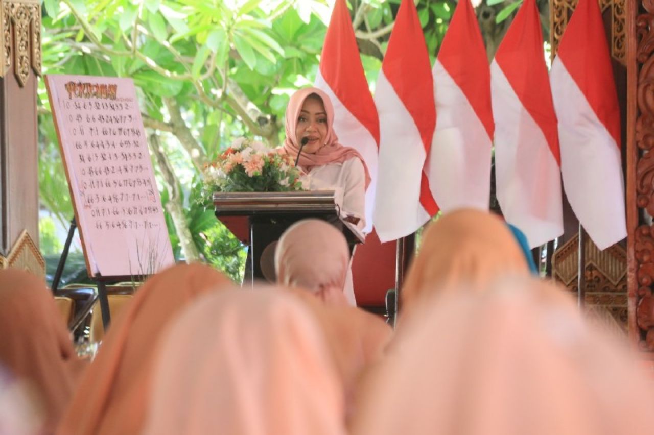 Bupati Ikfina saat memberikan sambutan pada resepsi HUT DWP ke-25. (ist)