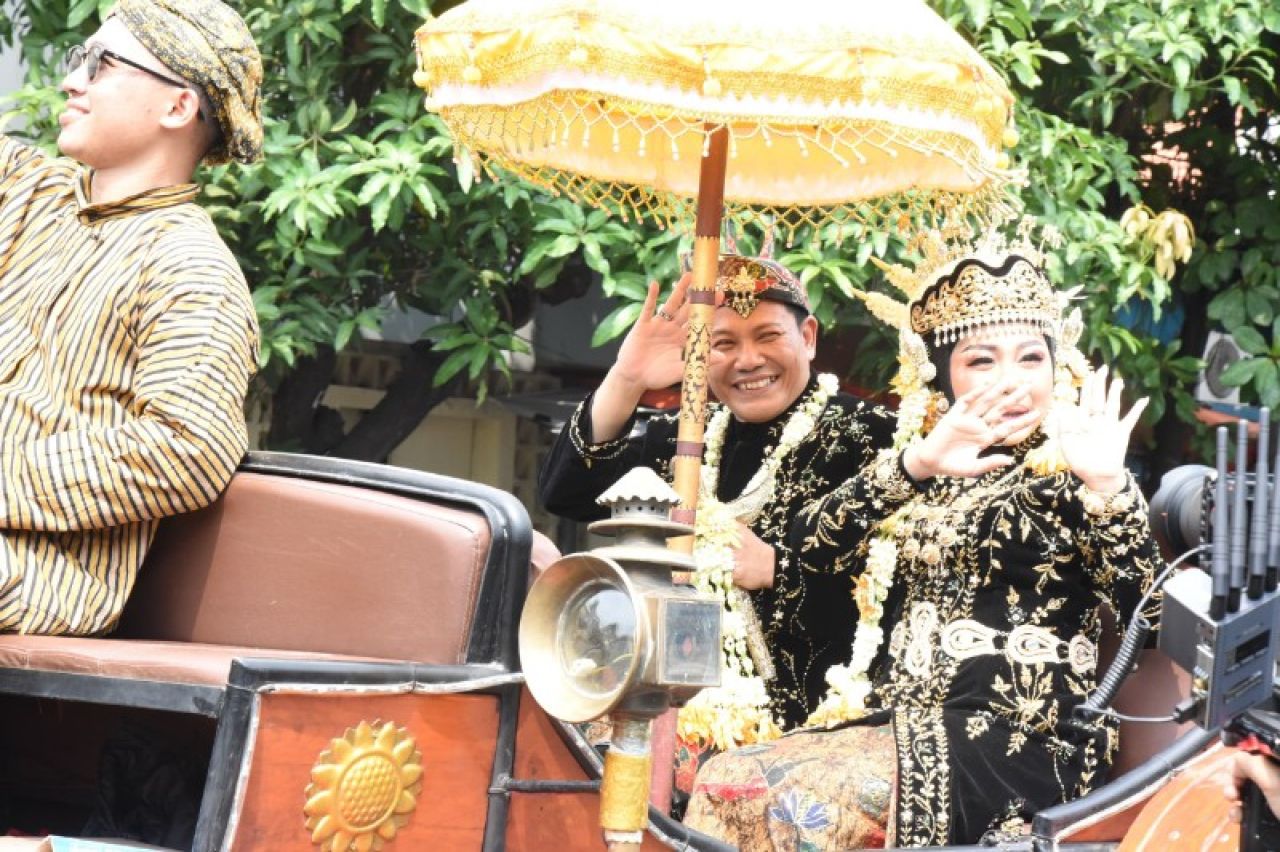 Plt Bupati Subandi beserta istri naik andong menunju Pendopo. (ist)
