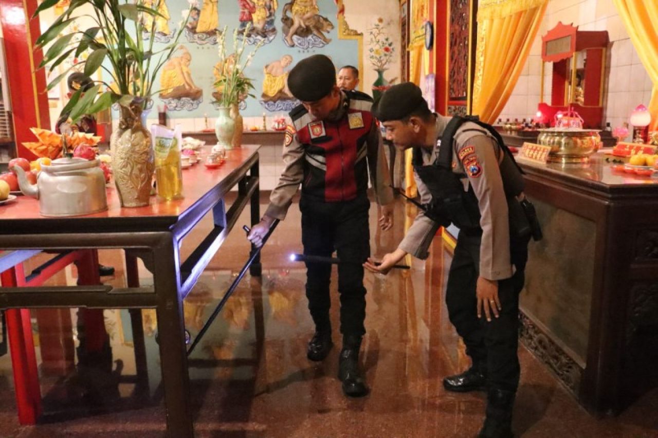 Bahkan Kasat Samapta Polres Mojokerto Kota AKP Anang Leo terjun langsung untuk memastikan kondisi di Klenteng, dengan melihat setiap sudut yang ada di sana.