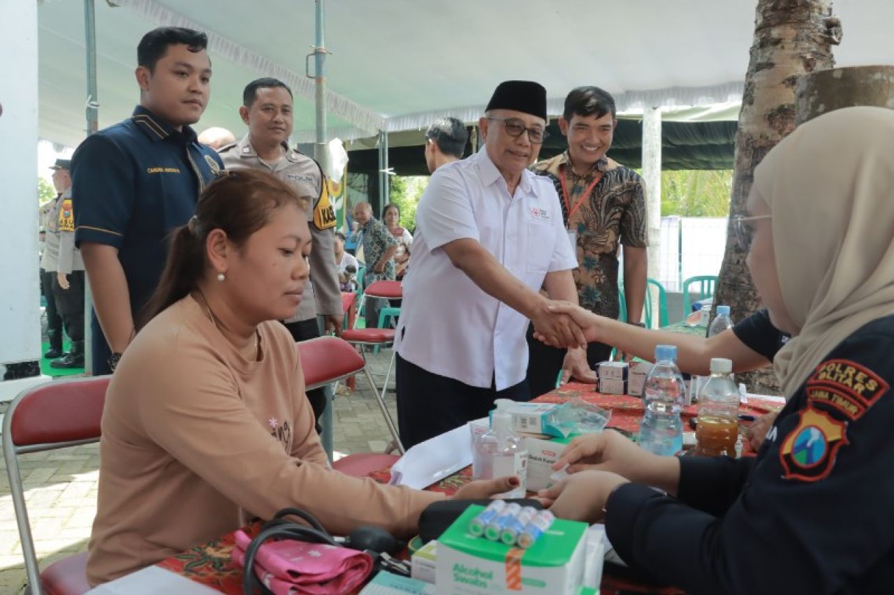 Masyarakat tampak antusias mengikuti pemeriksaan kesehatan yang meliputi konsultasi medis, donor darah, cek gula darah, pemeriksaan tekanan darah, serta pemberian obat secara gratis.