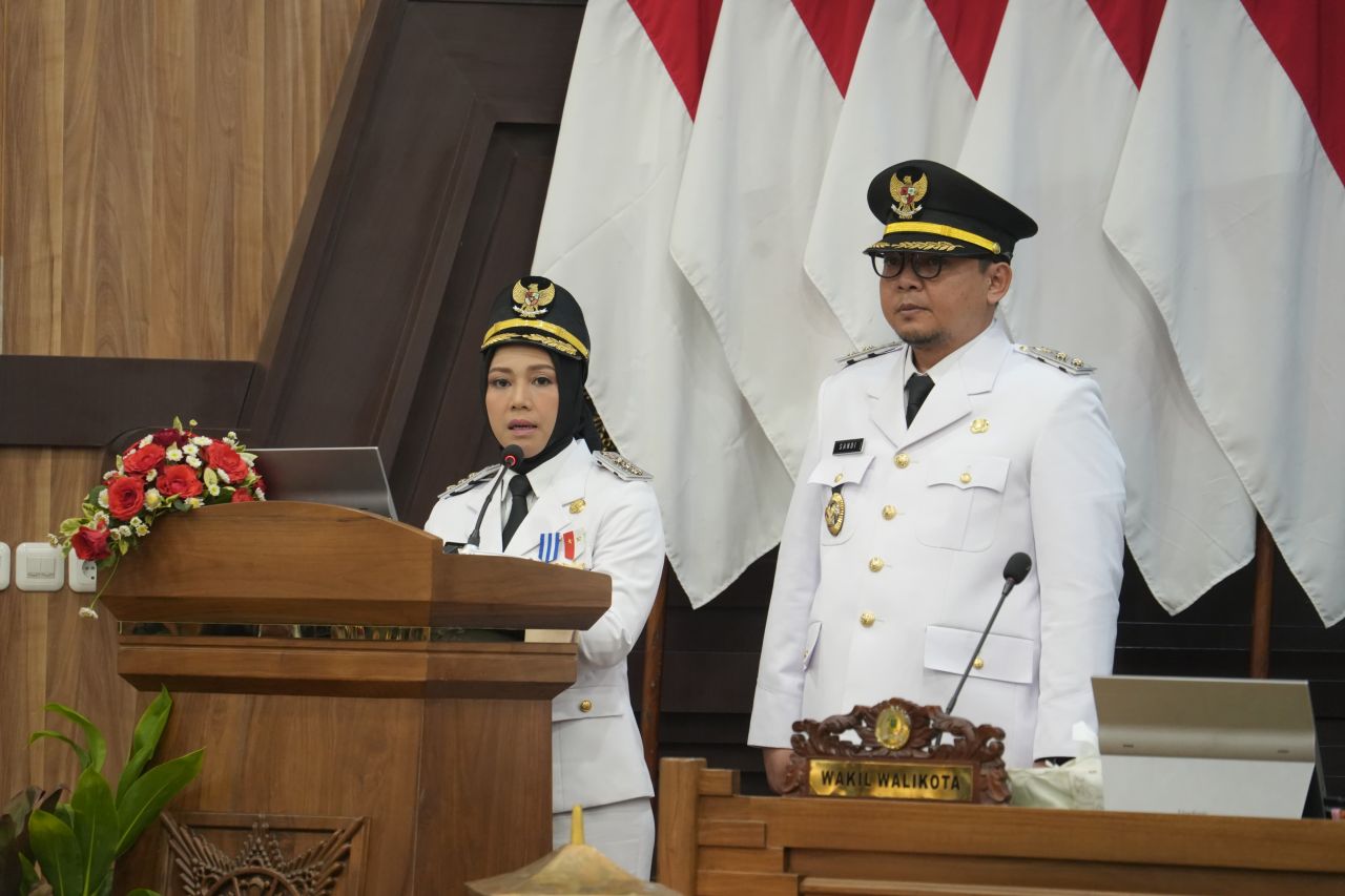 Selanjutnya Wali Kota Mojokerto Ika Puspitasari dan Wakil Wali Kota Mojokerto Rachman Sidharta menyampaikan Visit Misi Wali Kota dan Wakil Wali Kota Mojokerto Masa Jabatan 2025-2030.