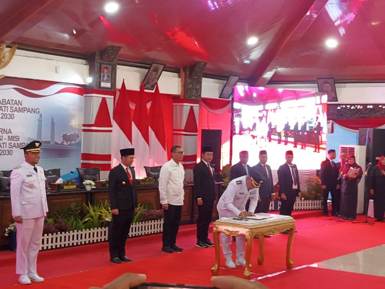 SAMPANG | B-news.id- Dewan Perwakilan Rakyat Daerah (DPRD) Kabupaten Sampang sukses gelar rapat paripurna dan Serah Terima Jabatan (SERTIJAB) Bupati Sampang H.Slamet Junaidi dan Wakil Bupati H.Muhammad Mahfudz masa jabatan 2025-2030. Kegiatan dilaksanakan di aula pendopo Kabupaten Sampang, Rabu (5/3/30).