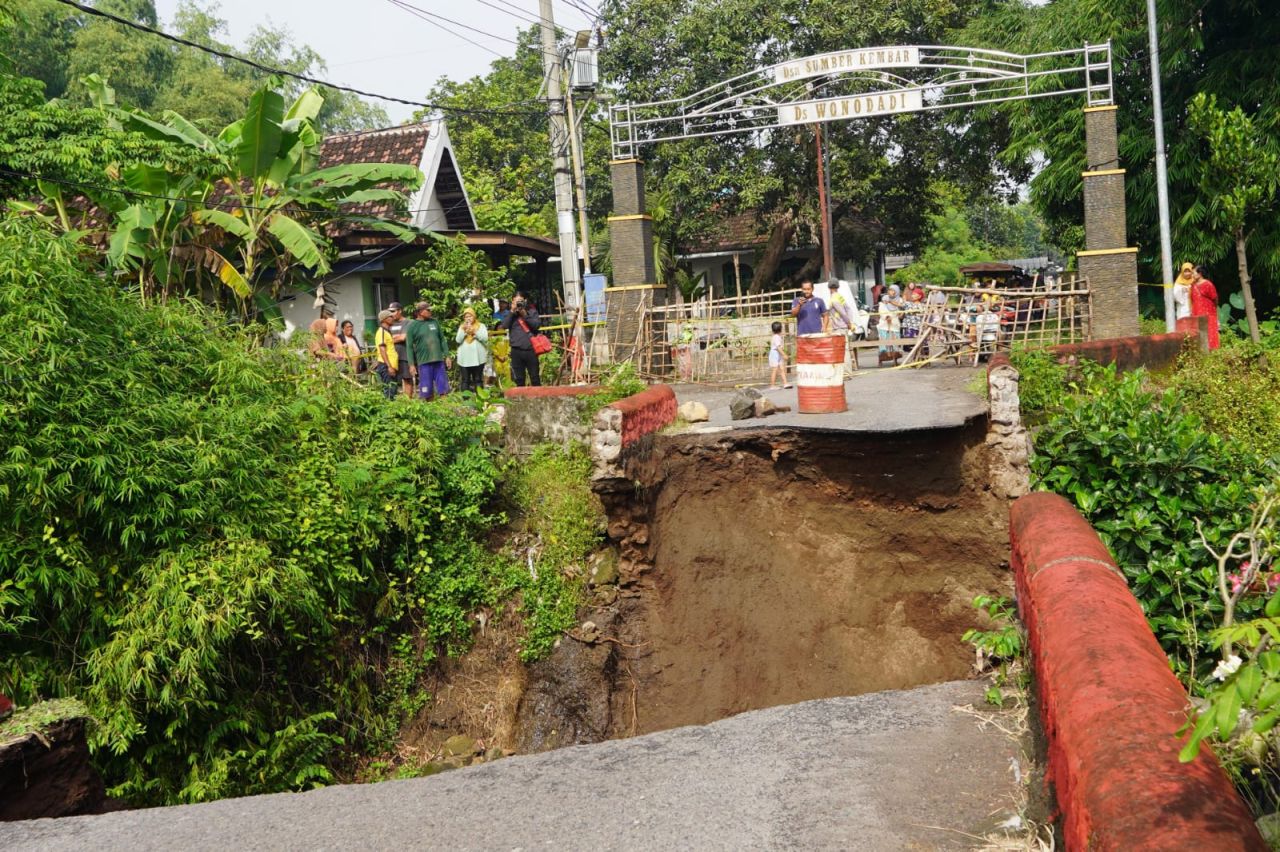 Jembatan penghubung antar Dusun Wonokerto dan Dusun Sumber Kembar tersebut ambruk pada Sabtu (15/3) malam. Ambruknya jembatan itu diakibatkan curah hujan lebat yang mengguyur wilayah setempat, sehingga berdampak pada peningkatan debit air sungai.