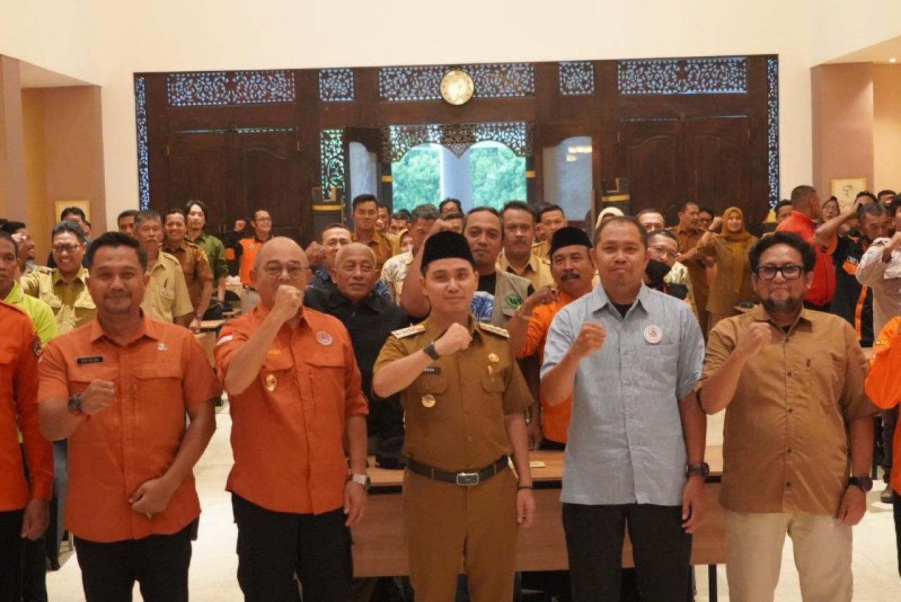 Gus Barra didampingi Kepala BPBD Kabupaten Mojokerto Yo'i foto bersama peserta bimtek. (ist)