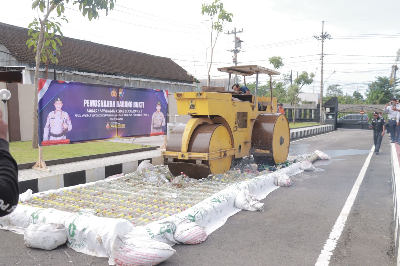 Dalam operasi pekat yang digelar pada tanggal 26 Februari – 9 Maret 2025, petugas berhasil mengamankan berbagai jenis dan merk antara lain 2.527 (dua ribu lima ratus dua puluh tujuh) botol Arak, 86 (delapan puluh enam) botol merk Anggur merah, 184 (seratus delapan puluh empat) botol merk TM, 136 (seratus tiga puluh enam) botol merk Bintang Kuntul, 72 (tujuh puluh dua) botol merk Vodka, 57 (lima puluh tujuh) botol merk Iceland dengan Jumlah keseluruhan 3.062 (tiga ribu enam puluh dua) botol berbagai merk.