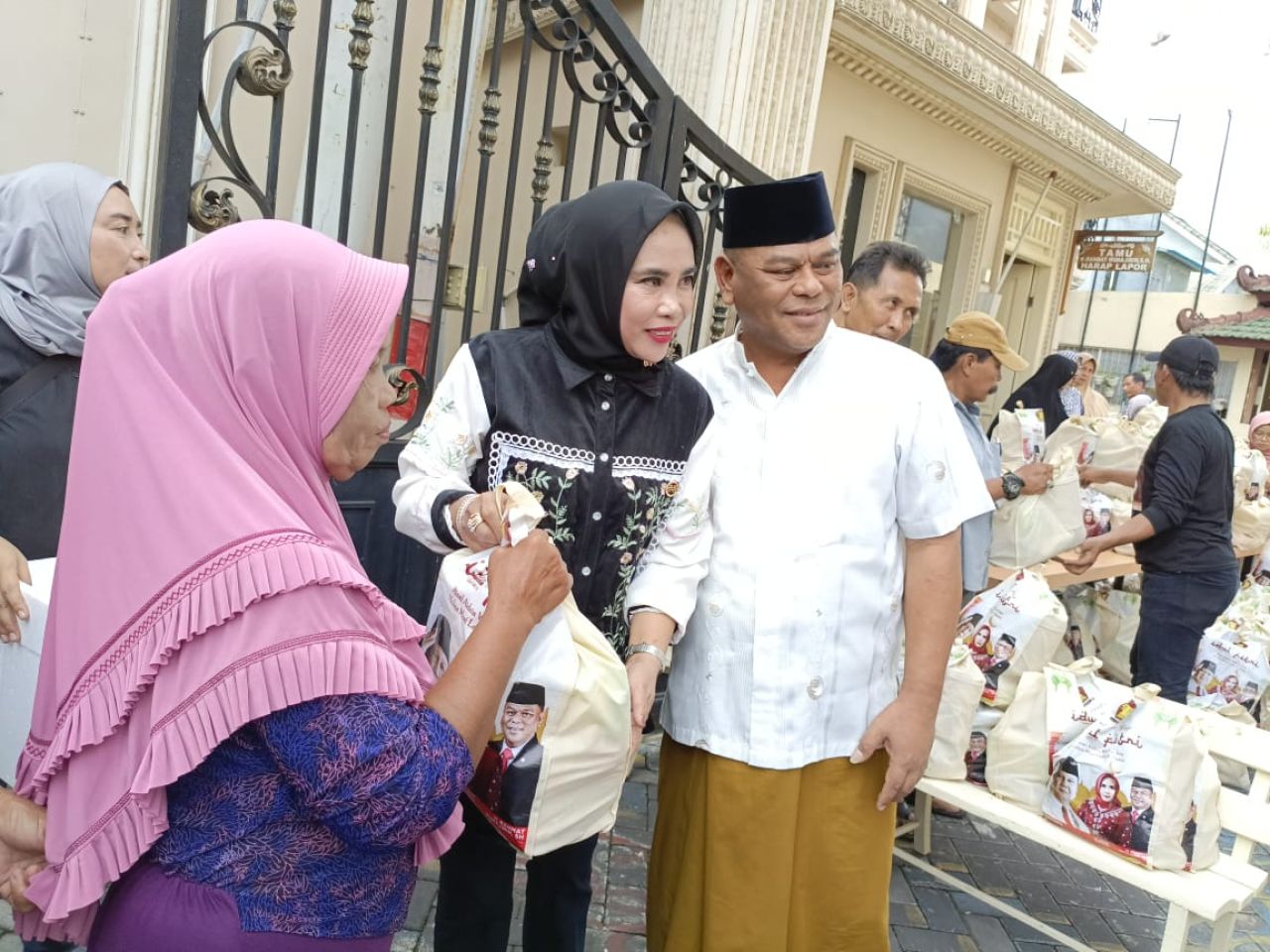 SIDOARJO | B-news.id - Menjelang Hari Raya Idul Fitri 1446 Hijriah, Keluarga H Rahmat Muhajirin dan istrinya Hj Mimik Idayana berbagi ceria dengan masyarakat sekitar, yakni membagikan sembako.