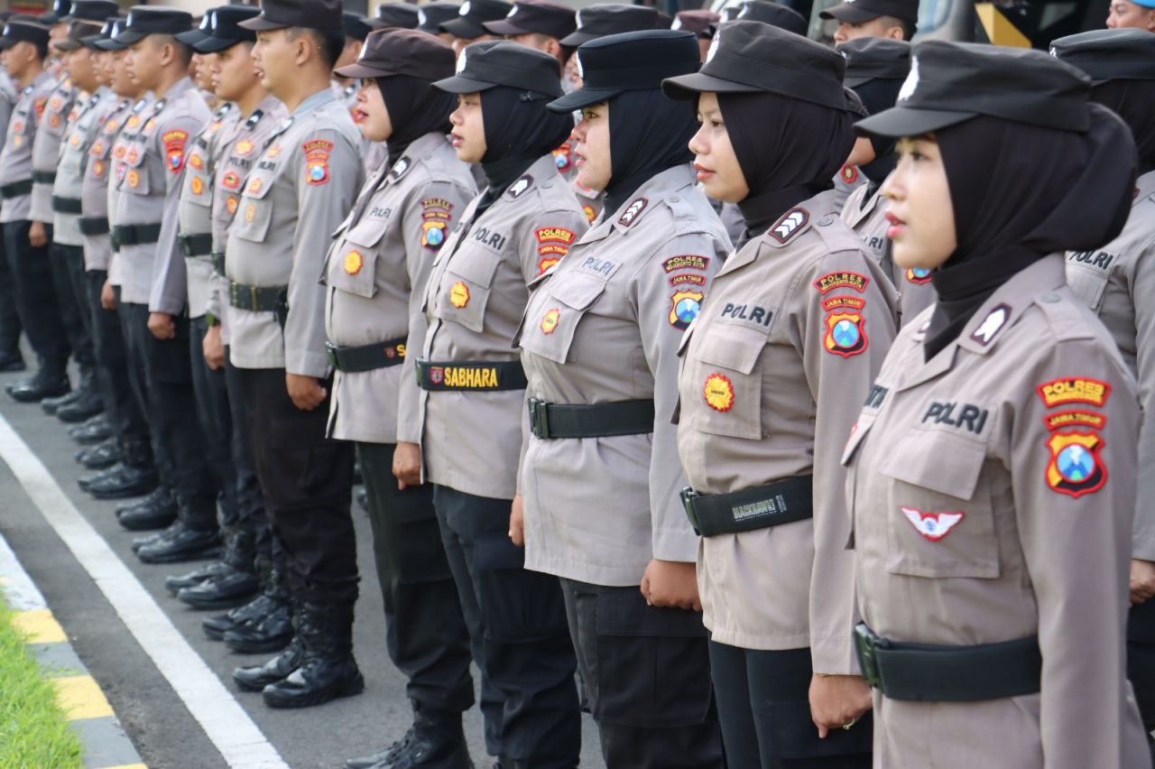 Bersama anggota Polres Mojokerto yang lain para polwan Polres Mojokerto Kota mengikuti upacara. (ist)