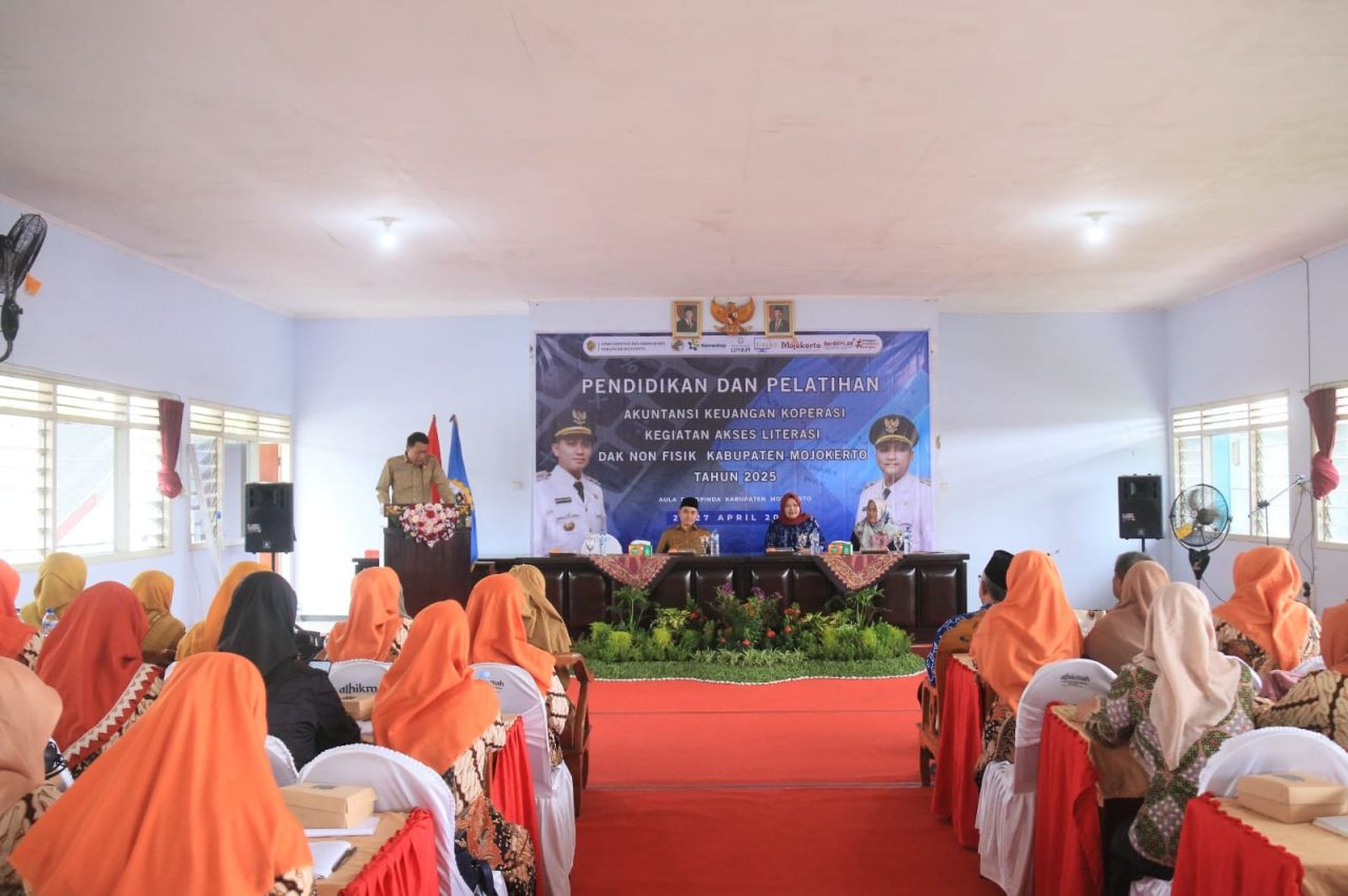 Program pelatihan dalam rangka penguatan kapasitas dan fondasi perekonomian lokal di Kabupaten Mojokerto ini, digelar di aula gedung Dekopinda Kabupaten Mojokerto, pada Selasa (22/4) siang.