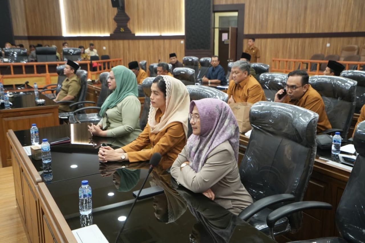 Tiga Srikandi dalam jajaran anggota DPRD Kota Mojokerto 2024-2029 sedang mencermati RPJMD yang disampaikan Wali Kota. (foto: eko/B-news)