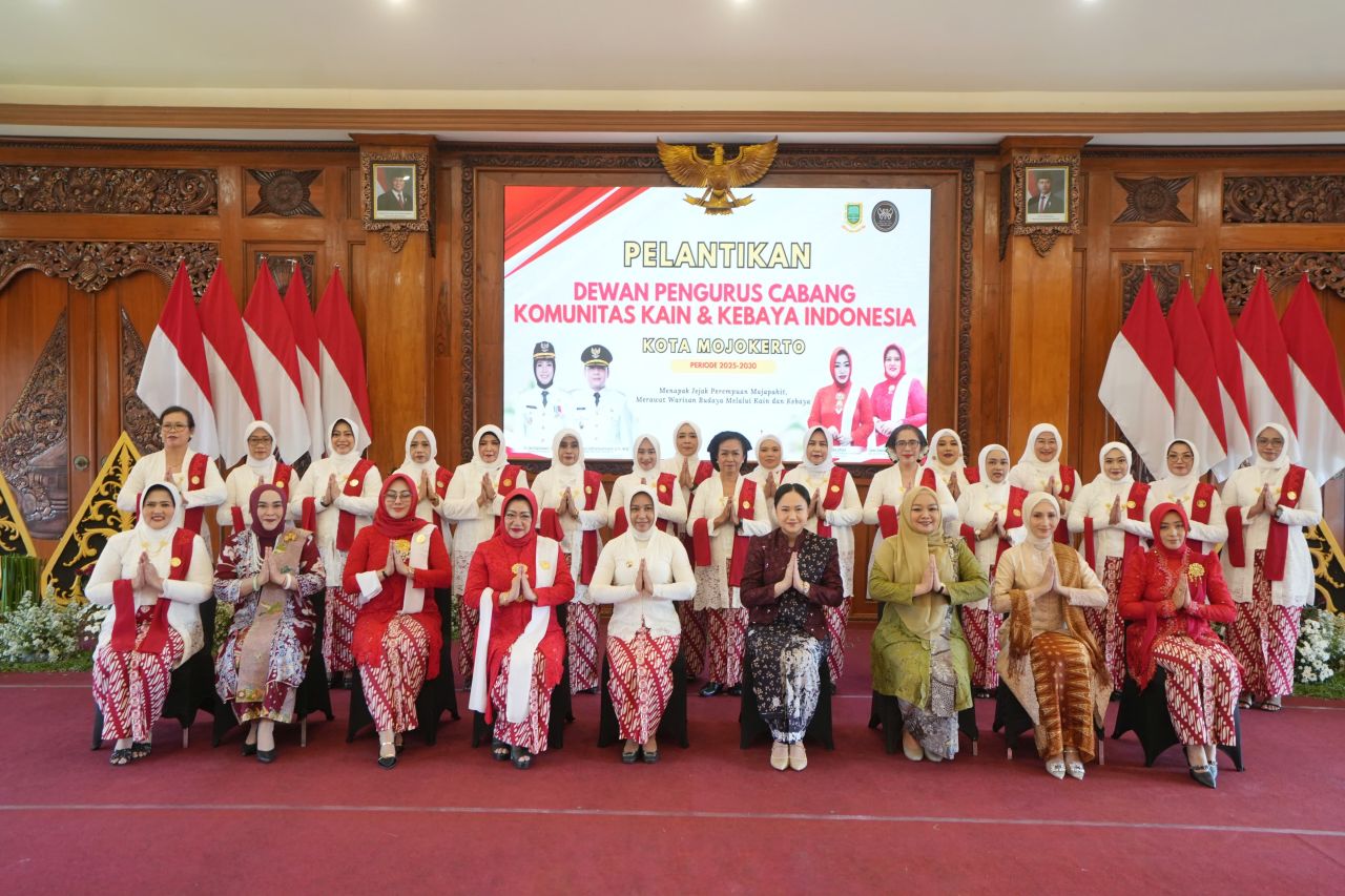 KOTA MOJOKERTO | B-news.id - Wali Kota Mojokerto Ika Puspitasari secara langsung hadir dalam pelantikan Dewan Pengurus Cabang (DPC) Komunitas Kain dan Kebaya Indonesia (KKI) Kota Mojokerto yang berlangsung di Ruang Sabha Mandala Madya, Balai Kota Mojokerto pada Rabu (16/7).