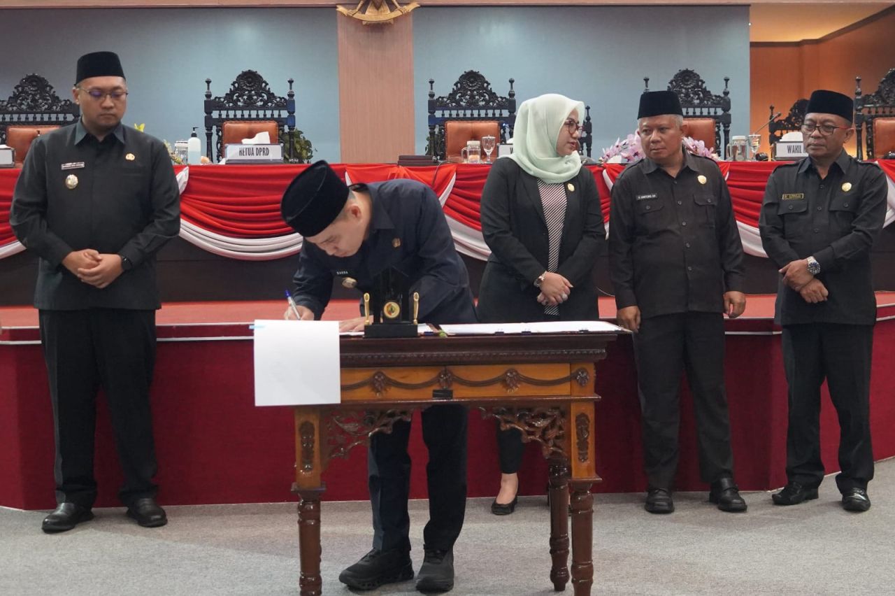 Bupati Gus Barra menandatangani raperda P-APBD 2025 untuk disahkan. (ist)