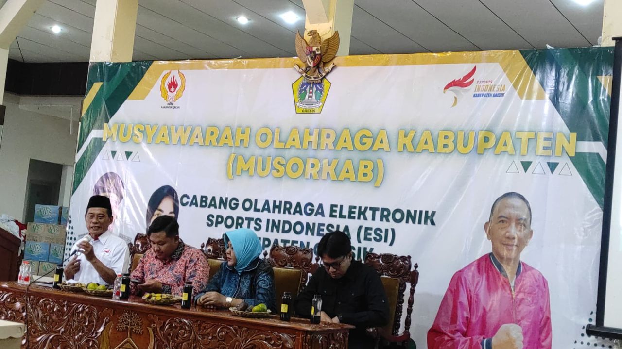 GRESIK | B-news.id - Musyawarah Elektronik Sports Indonesia ( ESI ) Kabupaten Gresik untuk pertanggung jawaban masa bhakti 2021- 2024 dan sekaligus pemilihan Ketua Umum ESI Gresik periode 2025-2028 telah berlangsung di Pendopo Bupati Gresik ruang Putri Mijil, Kamis (21/8).