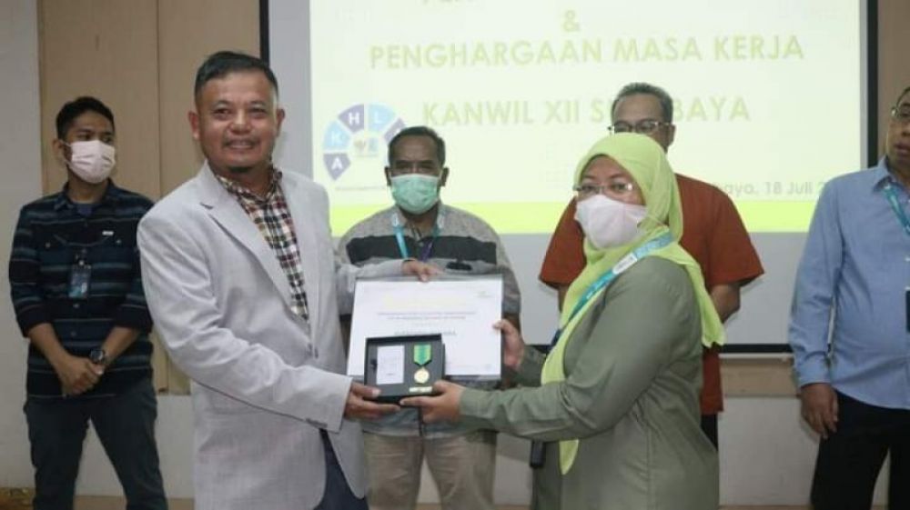 Mulyono selaku Pemimpin Wilayah Kanwil XII Surabaya menyampaikan ada sebelas karyawan yang menerima Medali dan Piagam Penghargaan diantaranya Delapan karyawan dengan masa kerja 20 tahun menerima Piagam Penghargaan dan Medali emas 5 gr emas batangan 24 karat, Satu karyawan dengan masa kerja 25 tahun menerima Piagam Penghargaan dan Medali emas 10 gr emas batangan 24 karat, sedangkan Dua karyawan dengan masa kerja 30 tahun menerima Piagam Penghargaan dan Medali emas 15 gr emas batangan 24 karat.