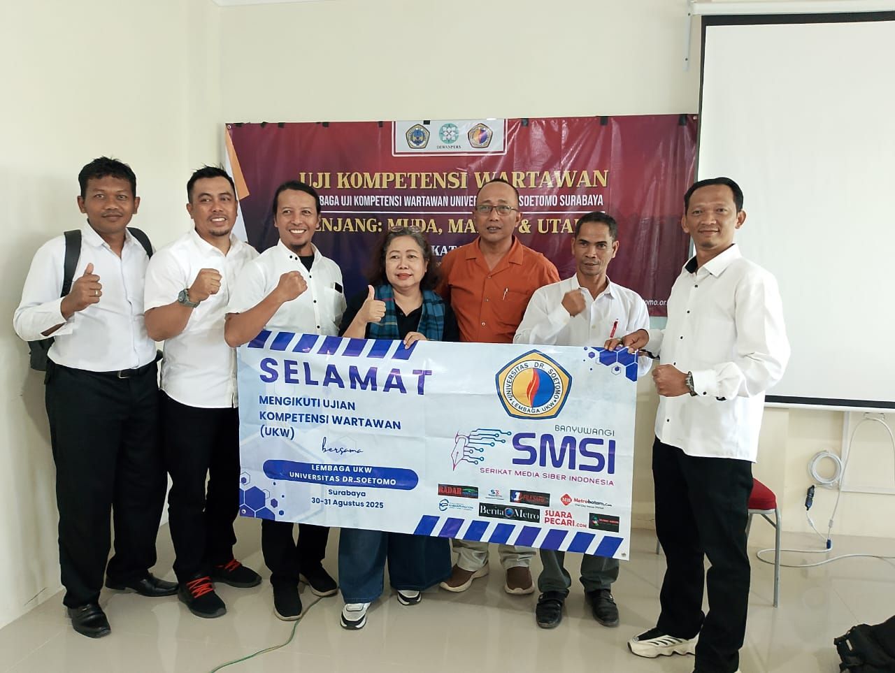 MOJOKERTO | B-news.id - Sebanyak 25 dari 26 peserta uji kompetensi wartawan (UKW) angkatan ke-20 lembaga uji Universitas dr Soetomo (Unitomo) dinyatakan kompeten, Minggu (31/8/2025) di Gedung H Kampus di Jalan Semolowaru.