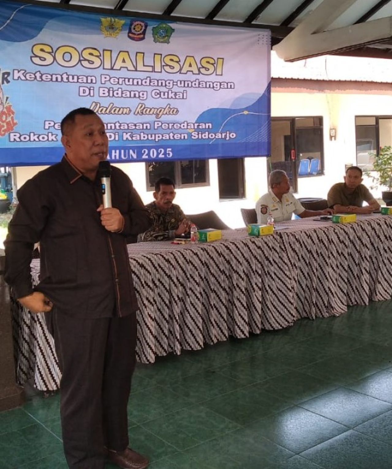 Wakil Ketua DPRD Sidoarjo, H Warih Andono, SH, saat menghadiri kegiatan sekaligus menjadi narasumber Sosialisasi Rokok Ilegal. (foto: zainul/B-news.id)