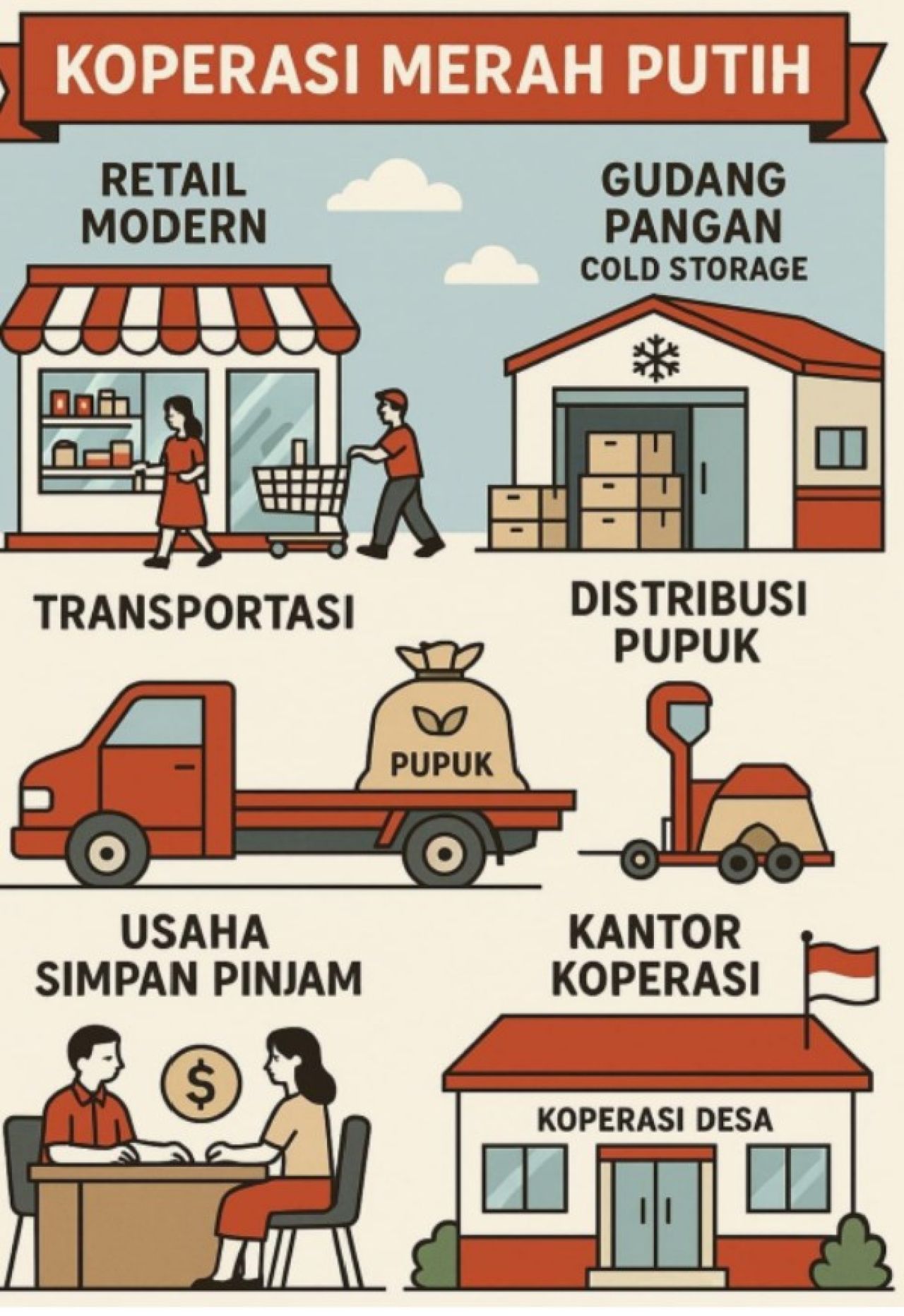 Foto ilustrasi pembentukan dan alur distribusi Koperasi Desa Merah Putih. (ist)