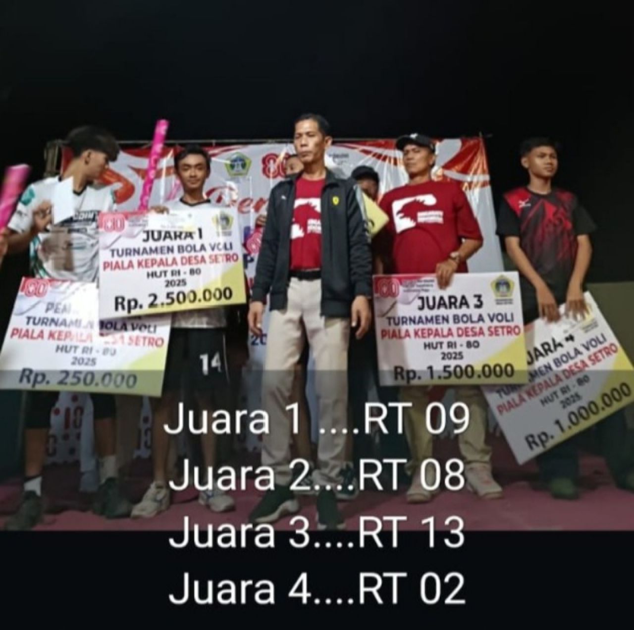 "Bagi kami generasi muda, ada kebanggaan tersendiri dengan turnamen voly piala kades Setro, harapan kami tahun epan ditambah lagi cabang olah raga yang di pertandingan," ujarnya.