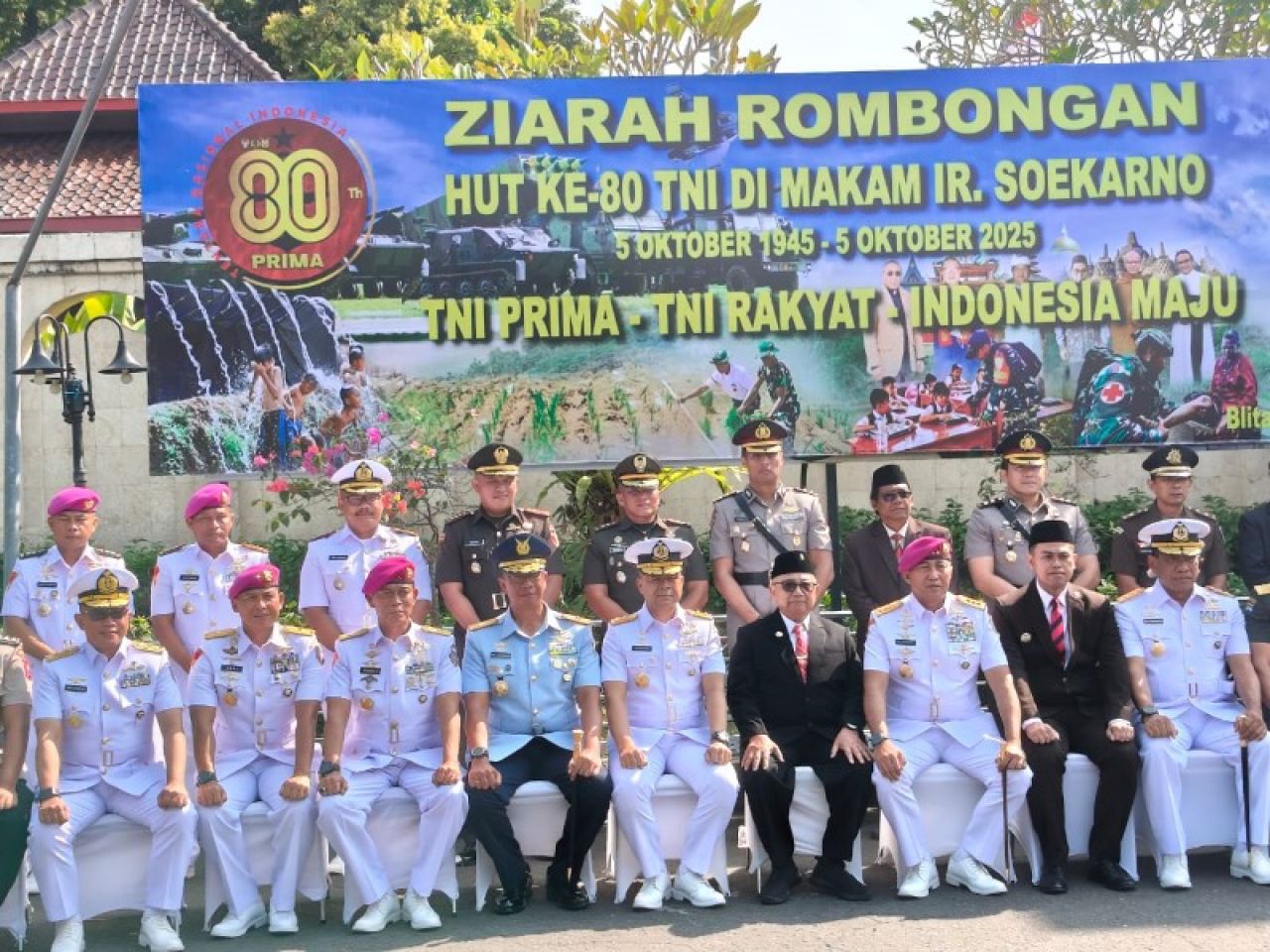 BLITAR | B-news.id - Dalam rangka menyambut Hari Ulang Tahun (HUT) ke-80 Tentara Nasional Indonesia (TNI) yang jatuh pada 5 Oktober 2025, TNI menggelar ziarah rombongan di Makam Bung Karno (MBK), Blitar, Jawa Timur, pada Minggu (28/9/2025).
