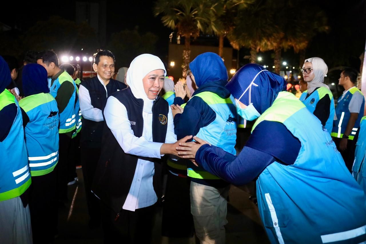 SURABAYA | B-news.id - Gubernur Jawa Timur Khofifah Indar Parawansa memberangkatkan 62 Tim Pelayanan Kesehatan (Yankes) Bergerak ke Pulau Kangean Kabupaten Sumenep dari Halaman Gedung Negara Grahadi, Surabaya, Jumat (17/10) dini hari.